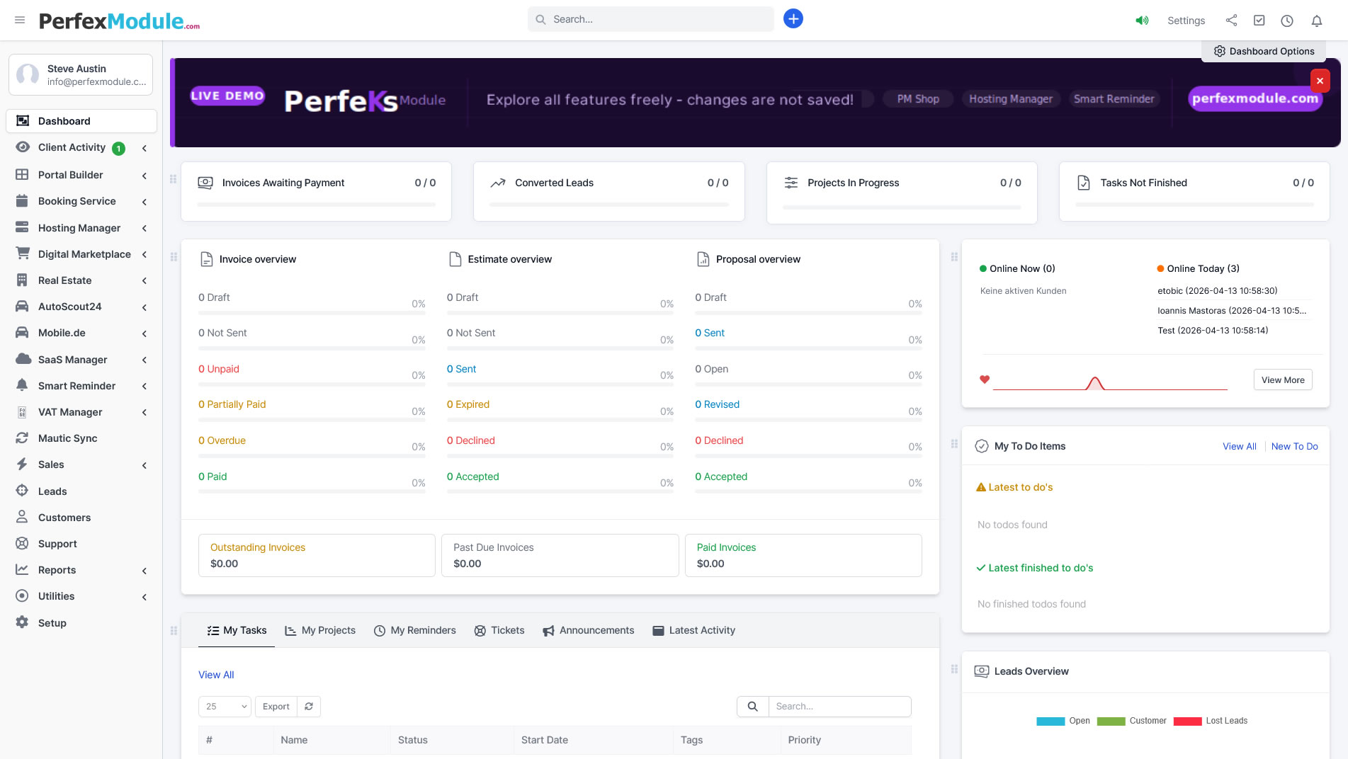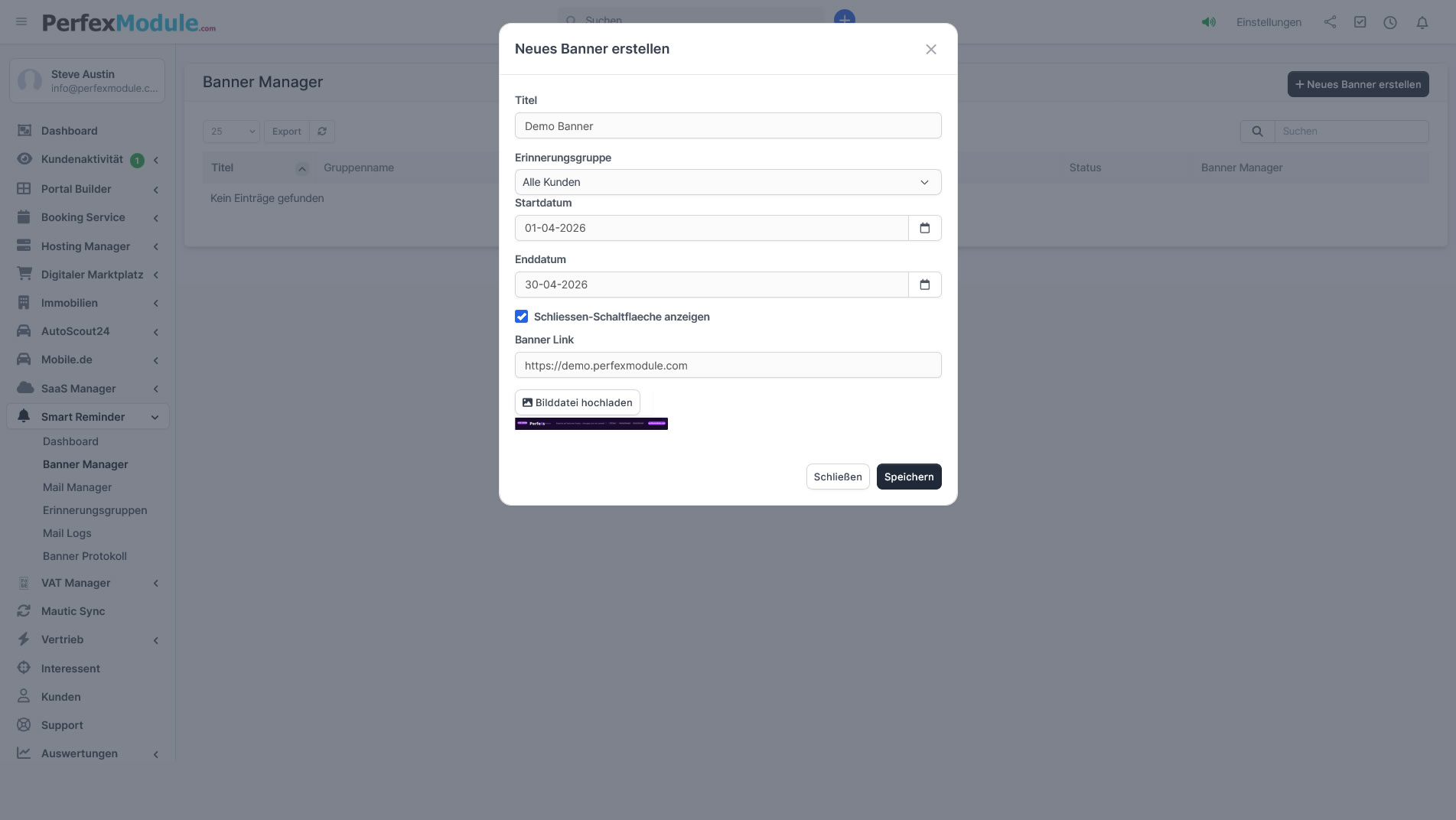 Banner und E-Mail-Erinnerungen — integriert in Perfex CRM