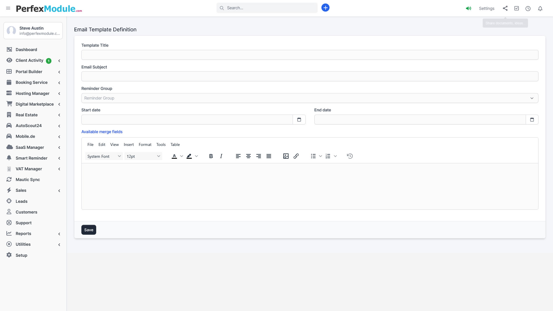 - ✓Vollständige Unterstützung für Perfex Merge-Felder