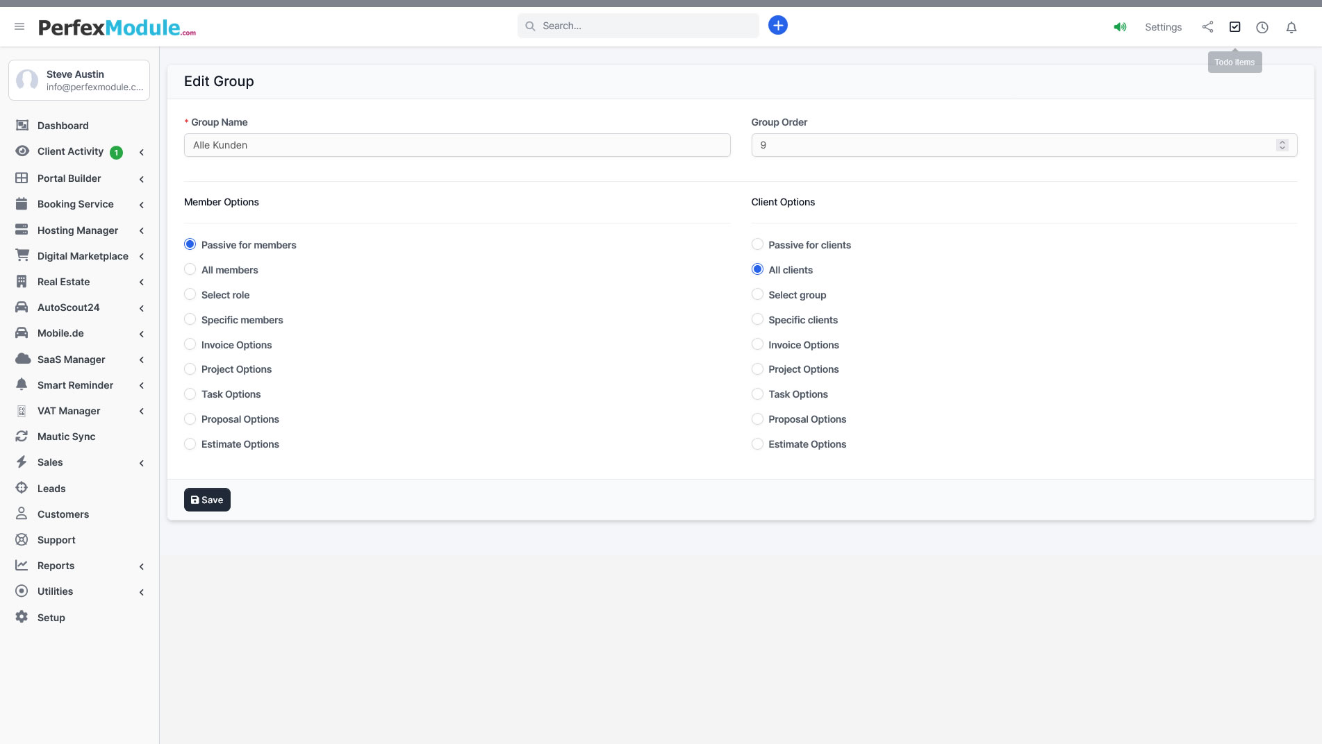 Sauberer Arbeitsablauf innerhalb von Perfex CRM